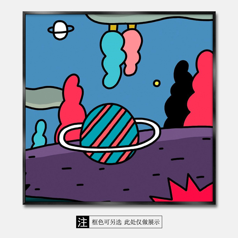 ストライプ惑星と宇宙空間 アートポスター
