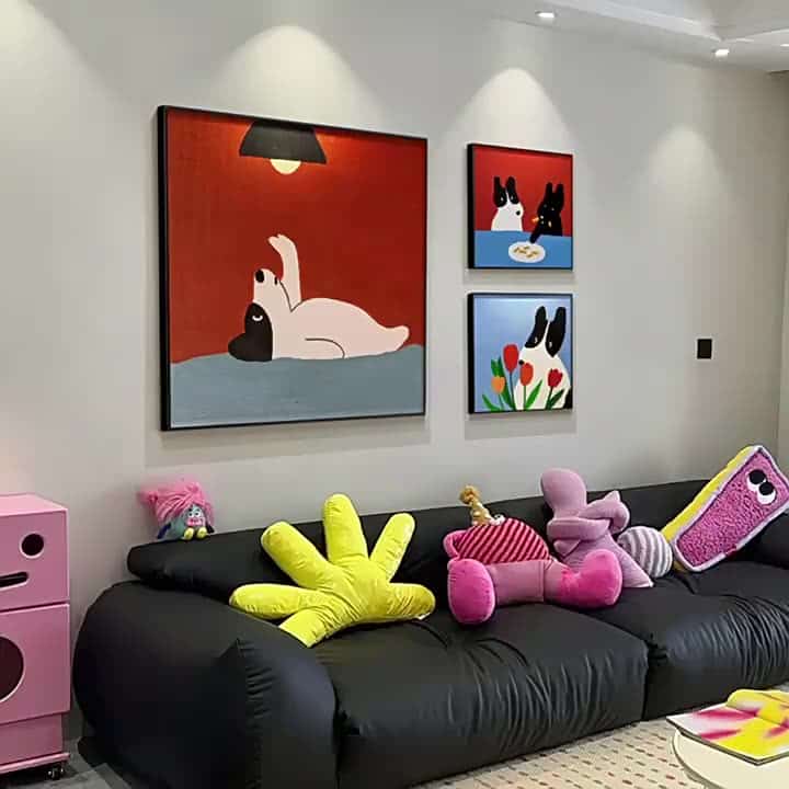 2匹の犬が描かれた癒しのアート
