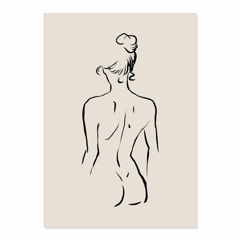 柔らかな線で描かれた女性の後ろ姿が印象的な女性ラインアート ポスター。