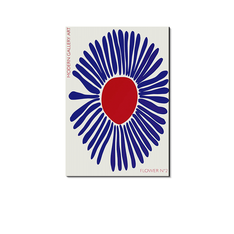 ブルーの花びらと赤い中心が印象的なモダンフラワー ポスター。