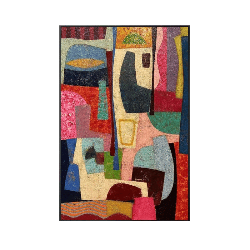 幾何学的な形と柔らかな色彩が融合し、リビングや玄関を明るく演出します。