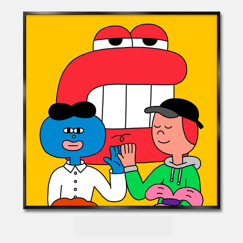 カラフルで楽しいキャラクターが描かれたポップなアートポスター。