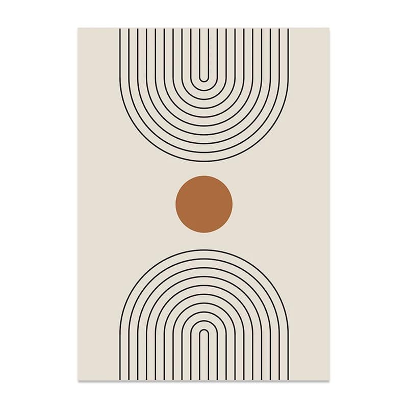 対称的なラインとブラウンの円が調和した、洗練された抽象デザイン ポスター